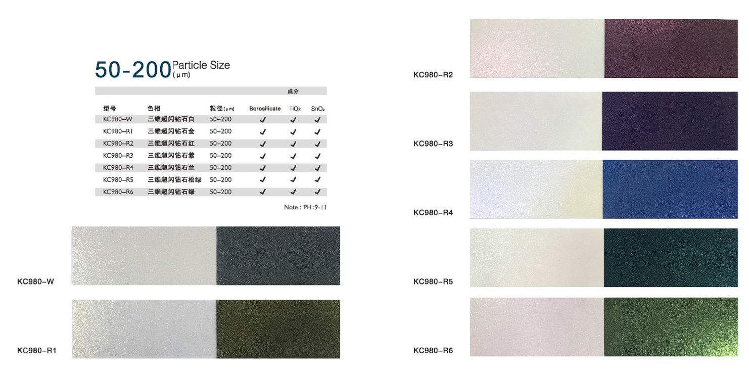鉆(zhan)石龍系列(lie)珠光顏料帶你(ni)全面升級內在感官,換套色譜就能體驗新(xin)(xin)世界。憑(ping)借新(xin)(xin)型(xing)合成(cheng)的(de)(de)高透明度片狀硼硅酸鹽(yan),讓(rang)你(ni)提前嗅到趨勢;采用全新(xin)(xin)的(de)(de)包(bao)膜工藝,大(da)程度增加金(jin)屬物(wu)包(bao)覆率,讓(rang)你(ni)看(kan)到潮流轉變前的(de)(de)契機(ji);以(yi)超窄的(de)(de)粒徑、良(liang)好(hao)的(de)(de)遮(zhe)蓋力度,呈現(xian)鉆(zhan)石般的(de)(de)幻變之(zhi)韻,在新(xin)(xin)的(de)(de)制(zhi)高點上,讓(rang)你(ni)真(zhen)實的(de)(de)觸碰到更新(xin)(xin)、更高的(de)(de)未來。