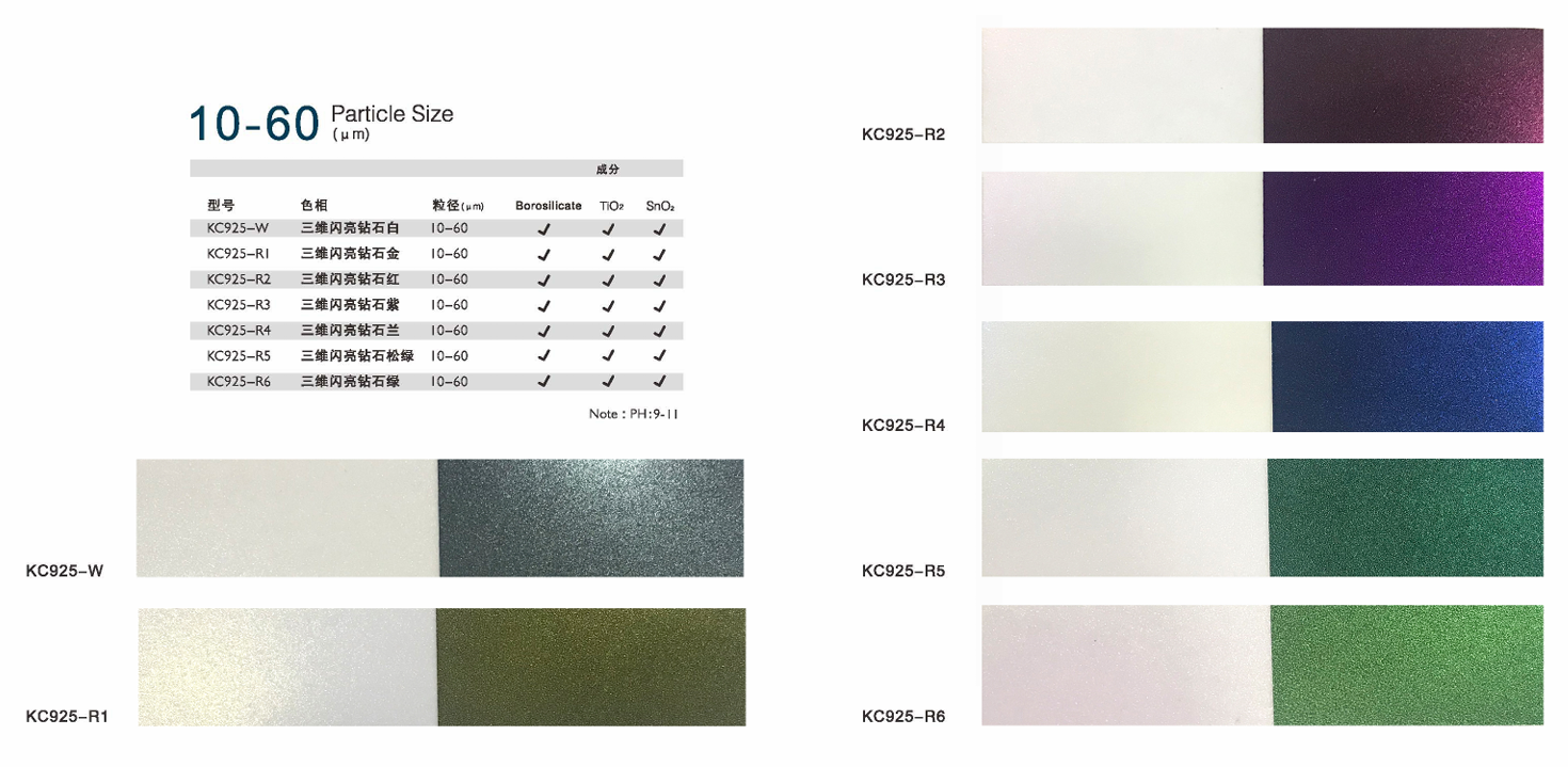 鉆(zhan)石龍系列(lie)珠光顏料帶你(ni)全面升級內在感官,換套色譜就能體驗新(xin)(xin)世界。憑(ping)借新(xin)(xin)型(xing)合成(cheng)的(de)(de)高透明度片狀硼硅酸鹽(yan),讓(rang)你(ni)提前嗅到趨勢;采用全新(xin)(xin)的(de)(de)包(bao)膜工藝,大(da)程度增加金(jin)屬物(wu)包(bao)覆率,讓(rang)你(ni)看(kan)到潮流轉變前的(de)(de)契機(ji);以(yi)超窄的(de)(de)粒徑、良(liang)好(hao)的(de)(de)遮(zhe)蓋力度,呈現(xian)鉆(zhan)石般的(de)(de)幻變之(zhi)韻,在新(xin)(xin)的(de)(de)制(zhi)高點上,讓(rang)你(ni)真(zhen)實的(de)(de)觸碰到更新(xin)(xin)、更高的(de)(de)未來。